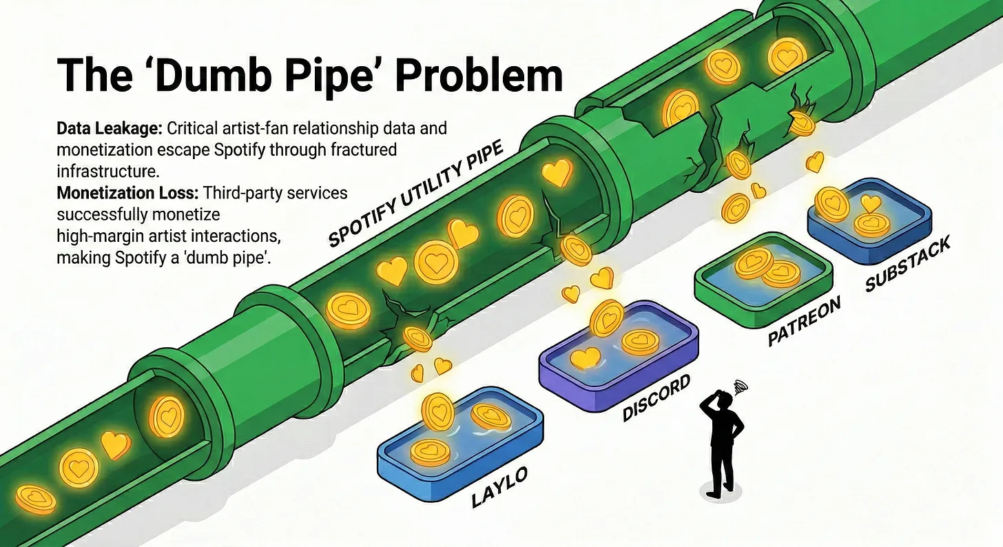 “Why does Spotify force artists to use Laylo for texting, Discord for community, and Patreon or Substack for subscriptions? Why do we need to build communities on other platforms?”